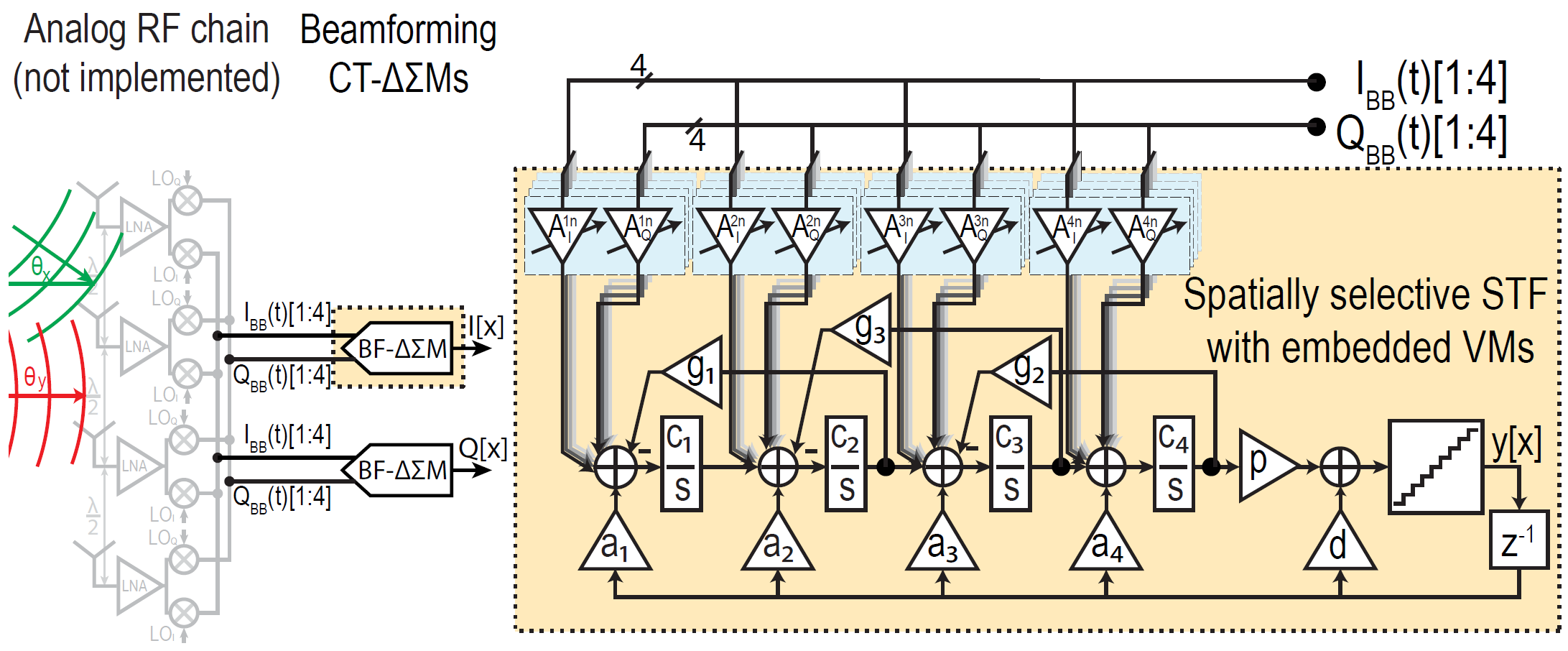 A 7.3 mW 200 MHz-BW 4-element Passive-Beamforming Continuous-Time ΔΣ ADC with >30dB Spatial Interferer Suppression